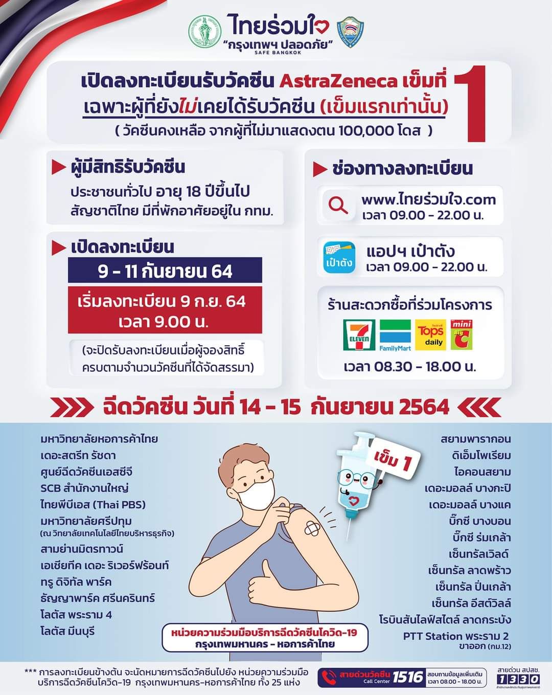 เปดวธลงทะเบยนฉดวคซนโควด-19 ไทยรวมใจ กรงเทพฯ ปลอดภย ผานแอปฯ เปาตง พรอมเชกคณสมบตผมสทธไดรบวคซนโควด-19ในโครงการฯ. ไดออกมาโพสตวา จะขอปรบเปลยนเวลาลงทะเบยน ฉดวคซน ไทยรวมใจ กรงเทพ ฯ ปลอดภย Safe Bangkok. โครงการ ไทยรวมใจ ศนยการคา เซนทรลทง 6 สาขา ในกรงเทพฯ.